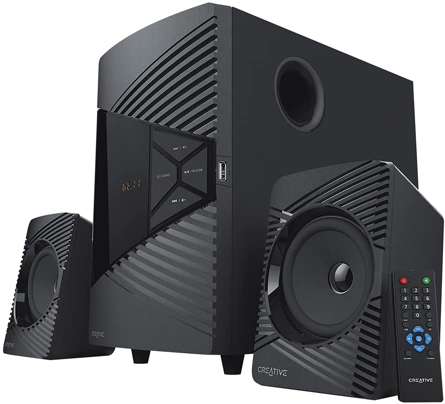 Creative SBS E2500 est un système de haut-parleurs de haute performance 2.1 qui produit des sons riches et en gras grâce à une grande variété d'options de connectivité. Diffusez votre Bluetooth, écoutez vos stations de radio FM préférez-vous, ou l'audio que vous choisissez de jouer directement via n'importe quel périphérique USB. Pour la connectivité par câble, utilisez la broche auxiliaire de 3,5 mm avec le ctese. En plus de tout cela, vous pouvez facilement accéder aux paramètres de reproduction de la musique et des paramètres audio, directement sur les haut-parleurs, ou l'accès au pré-inton d'EQ avec la télécommande par infrarouge. Creative SBS E2500 est le choix idéal pour tous vos besoins de divertissement audio.