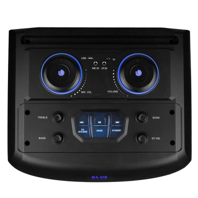 Obtenez une atmosphère de fiestuaire avec les lumières LED multicolores intégrées aux haut-parleurs. Les lumières RGB sont synchronisées avec le rythme de la musique, étant en mesure de sélectionner l'une des trois couleurs fixes ou même de s'éteindre de la télécommande ou de l'interrupteur à l'arrière. Son ñ compact, moderne et compact, intègre 3 anses, deux sur les côtés et un à l'arrière, adem &aalds inclut des roues pour un maximum de portabilité et de confort dans les déplacements.