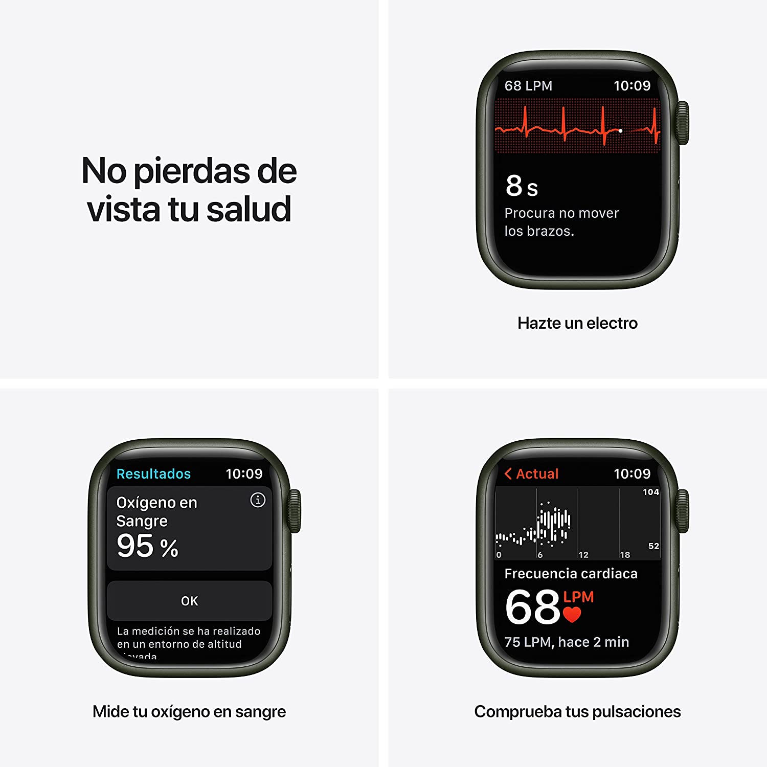 Mesuez votre oxygène dans votre sang avec une application et un capteur révolutionnaires. Vérifiez vos pulsations ou faites une électro à tout moment. Et cu íto date de manière exhaustive avec les nouvelles centrées sur le reste et l'attention au complet. La série 7 vous attend à toutes les heures.