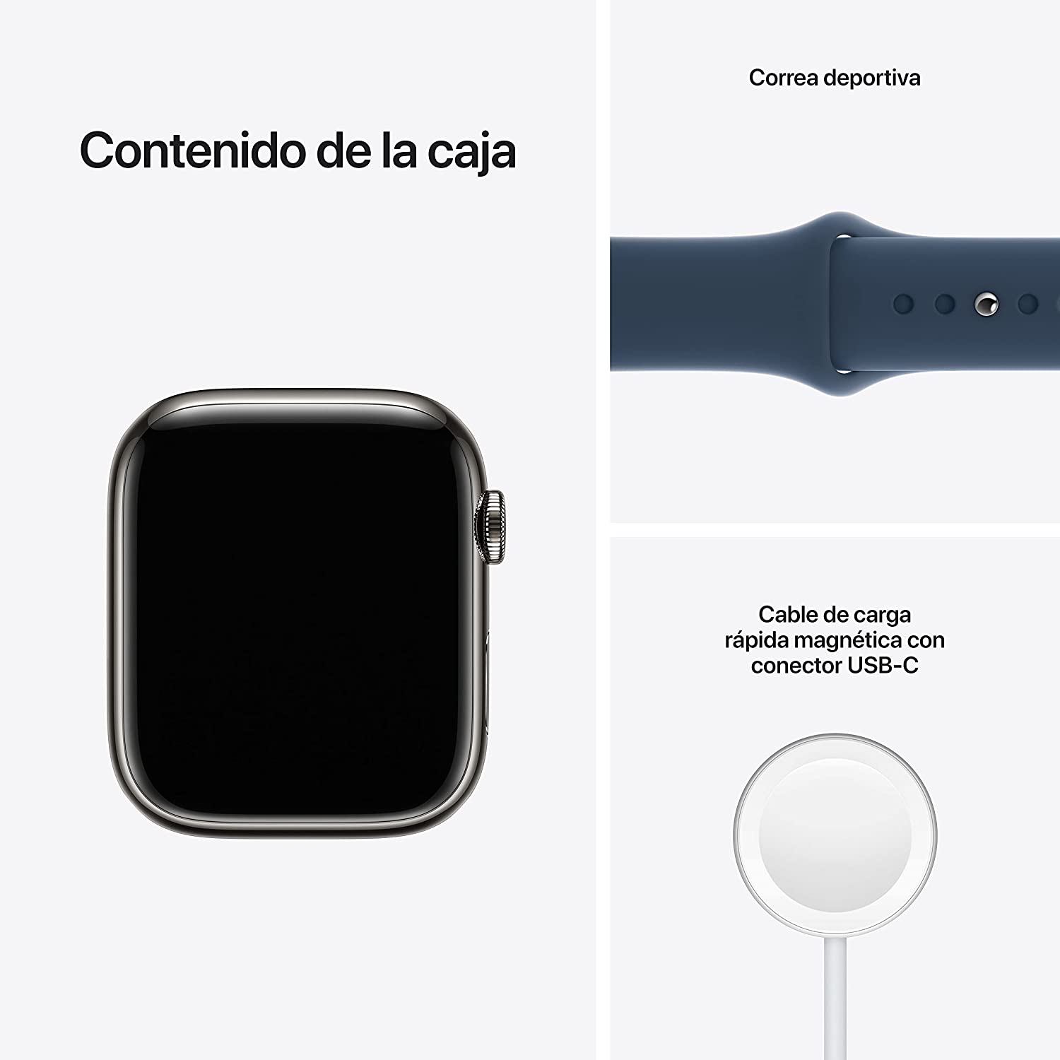 Apple Watch Series 7 GPS/Cellulaire 45 mm Caja de Acero Grafito / Correa deportiva Azul abismo