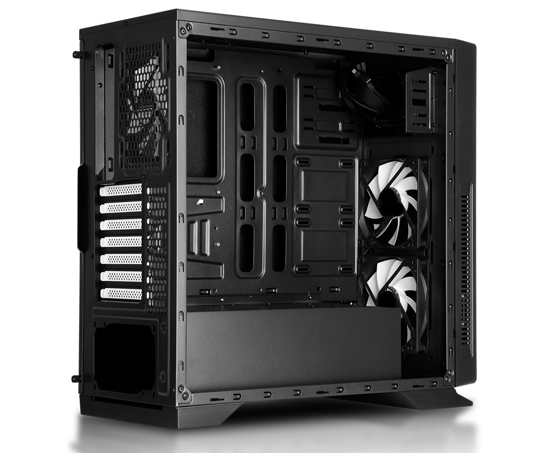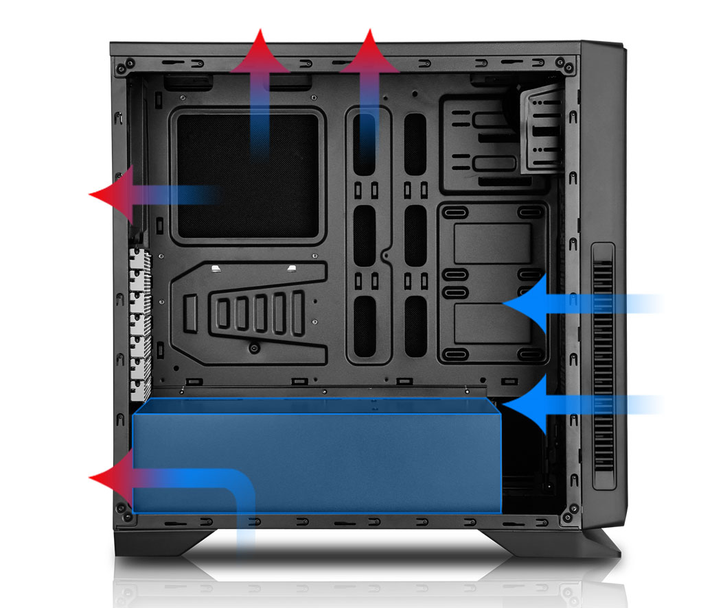 Grâce au réseau avant et aux ventilateurs, le débit d\'air froid entre directement à l\'intérieur pour réfrigérer le graphique et d\'autres composants. La disposition du PSU et du ventilateur arrière aidera à conduire toute la chaleur à l\'extérieur, permettant un débit d\'air efficace.