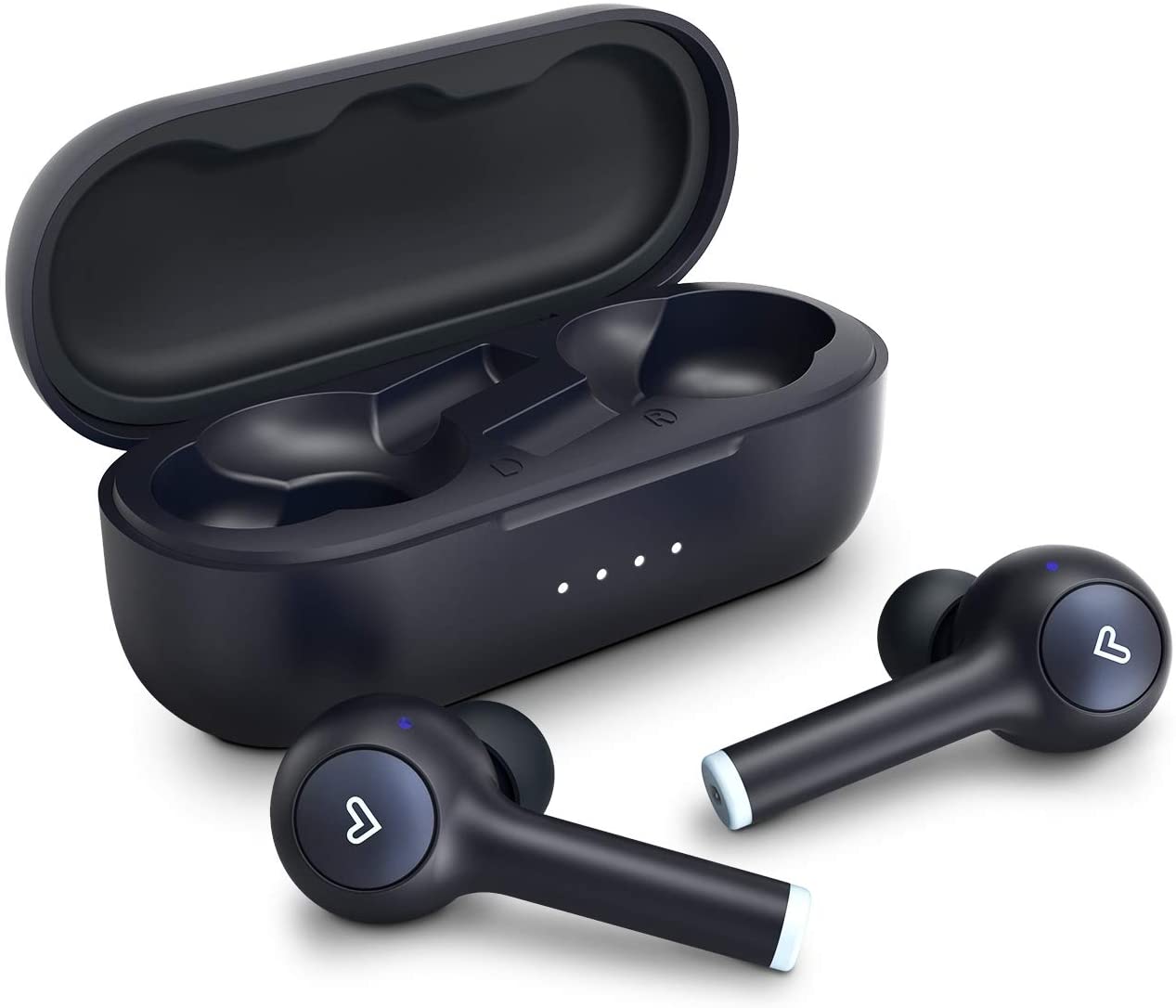Véritable casque sans fil pour profiter de votre musique sans câbles. Interrompre ou reprendre la reproduction, simplement cesser de fumer ou mettre vos écouteurs sur. Le boîtier de chargement a une charge de mbrica compatible Qi.
