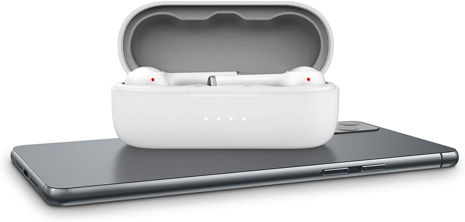 Olv &iute; date les câbles complètement. Son boîtier de recharge est compatible avec la norme Qi, il vous permet de charger vos écouteurs à 100% sans fil. Profitez des 15 heures supplémentaires de bater &iuteres auxquelles votre dossier de charge vous apporte.