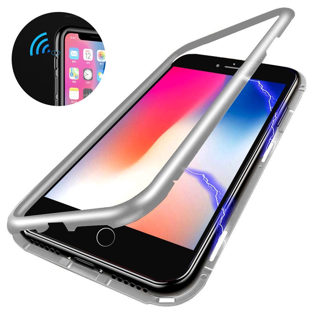 Boîtier magnétique avec verre trempé iPhone 7/8 Plus Argent