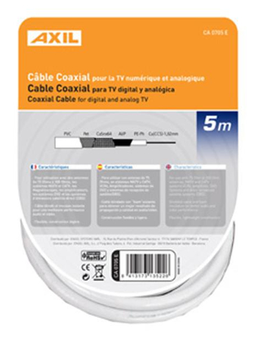 Câble blindé à faible adhérence pour une transmission optimale du signal de télévision.
