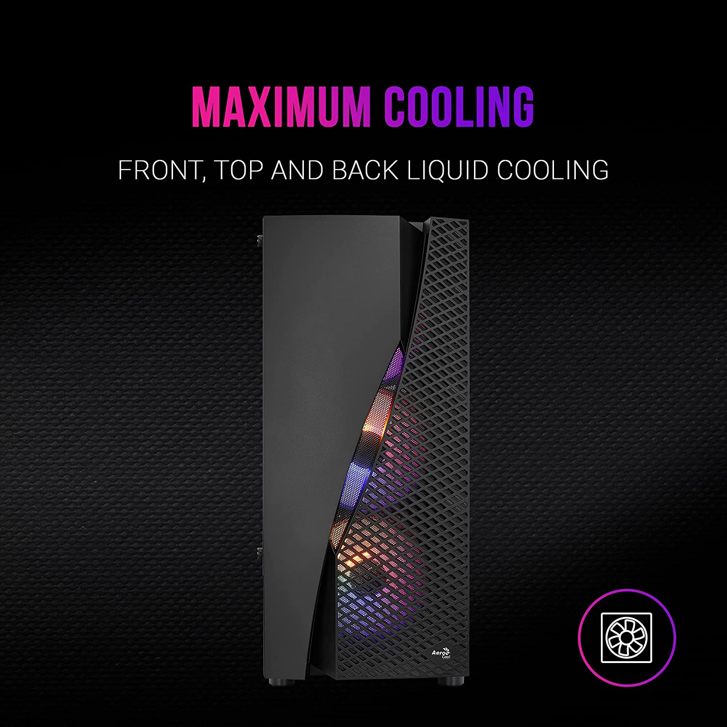 Avec un ñ ou un seul &unico, Aero eocool est équipé de 4 ventilateurs FRGB, d'un panneau latéral en verre trempé et d'un panneau avant avec des sorties d'air. Les ports situés au sommet sont plus accessibles, ce qui complète une spectaculaire boîte à haute performance.