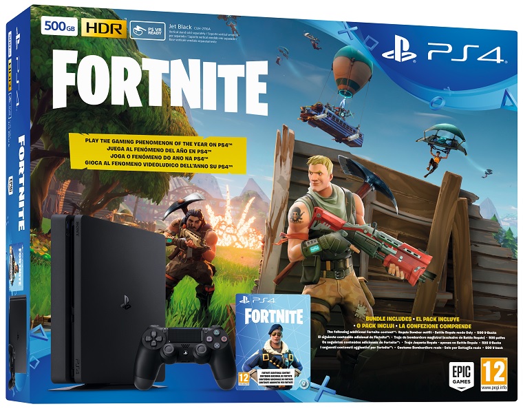 Pack composé de PlayStation 4 Slim 1Tb + Fortnite contenu supplémentaire comprenant: