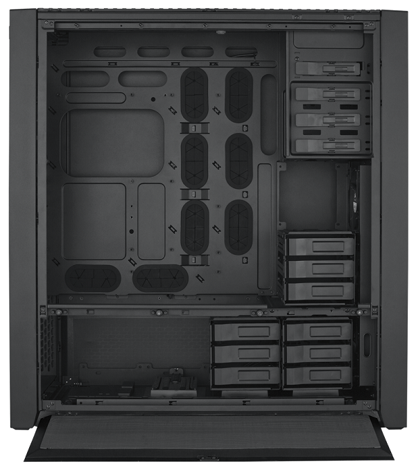 Le boîtier Obsidian Series 900D a été pensé pour les mordus de tours personnalisées qui voient loin. Aimeriez-vous élaborer le PC hautes performances dont vous rêvez depuis si longtemps ? Ajouter un dissipateur à air ou à liquide sophistiqué ? Assembler une structure ultrapuissante à quadruple GPU et double processeur graphique ? Ou tout simplement créer un gigantesque serveur de fichiers ?