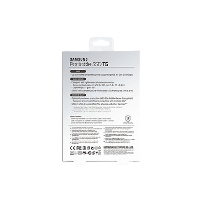 Le ñ ou l'á rencontré à la première extrémité et le corps uniforme arrondi s'insère dans la paume de votre main. Ne vous inquiète pas. Le T5 n'a pas de parties m &o. Il a un corps robuste avec un corps métallique fort, capable de tomber même de deux mètres sans souffrir ñ s. La protection ñ grâce au logiciel de cryptage ón AES 256-bit conserve vos données personnelles et privées en toute sécurité.