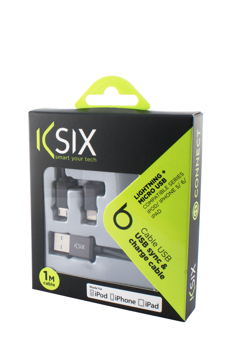- Charge et câble de données 2 en 1 Ksix USB Micro USB avec adaptateur Lightning
