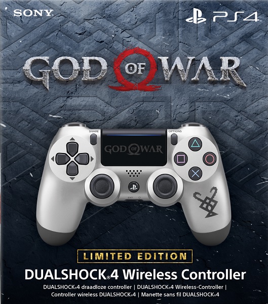 Dual Shock 4 controller édition limitée en couleur Leviathan Grey, sérigraphié avec la marque des frères Huldra, comprend également un logo discret God of War sur le panneau tactile.