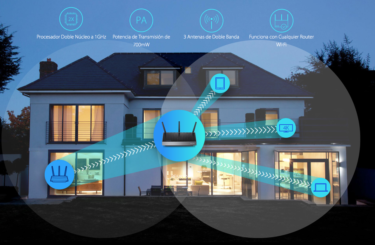 Avec trois antennes externes à double bande et des amplificateurs à haute puissance de 700mW, le RE580D peut établir une connexion sans fil stable avec n\'importe quel routeur Wi-Fi et augmenter sa couverture réseau à 930 mètres carrés. Le processeur double coeur 1GHz fournit un maximum Les performances Wi-Fi, maintient votre smartphone et tablettes connecté tout en se déplaçant par son