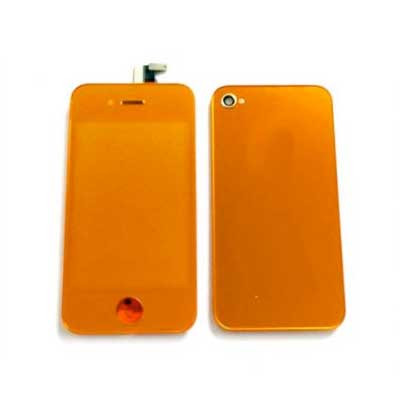 Complète cas de haute qualité compatible avec l'iPhone 4. Rouge métallique, il se compose de la façade, qui comprend l'écran lcd, numériseur et accueil bouton et le dos.