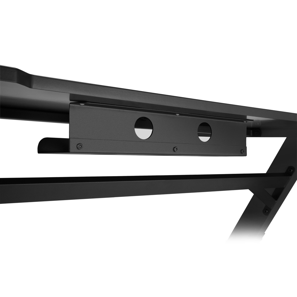 La table Sharkoon SGD1 dispose d'un système de gestion des câbles efficace en bas. Grâce à l'&easul et au trou à l'arrière de la mesa.les câbles peuvent être organisés et dans l'ordre hors de vue. Le système de gestion des câbles peut être fixe, si nécessaire, dans l'une ou l'autre direction.