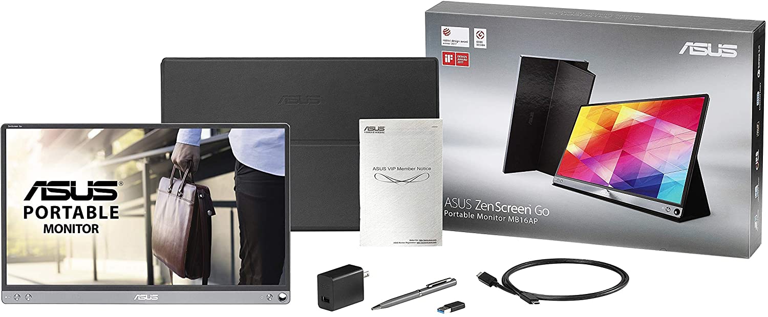 L\'ASUS ZenScreen Go MB16AP est conçu pour vous rendre productif de n\'importe où. C\'est le premier moniteur portable avec une entrée hybride qui vous permet de le connecter à n\'importe quel ordinateur portable en utilisant un seul câble USB. Avec un profil ultra fin de 8 mm et un poids de 0,78 kg, le ZenScreen Go MB16AP est également le moniteur auxiliaire léger de 15,6 pouces.