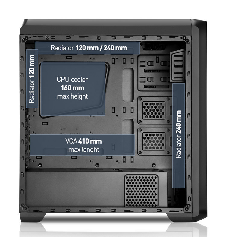 - Préparé pour le refroidissement liquide avec espace pour installer des radiateurs jusqu\'à 240 mm