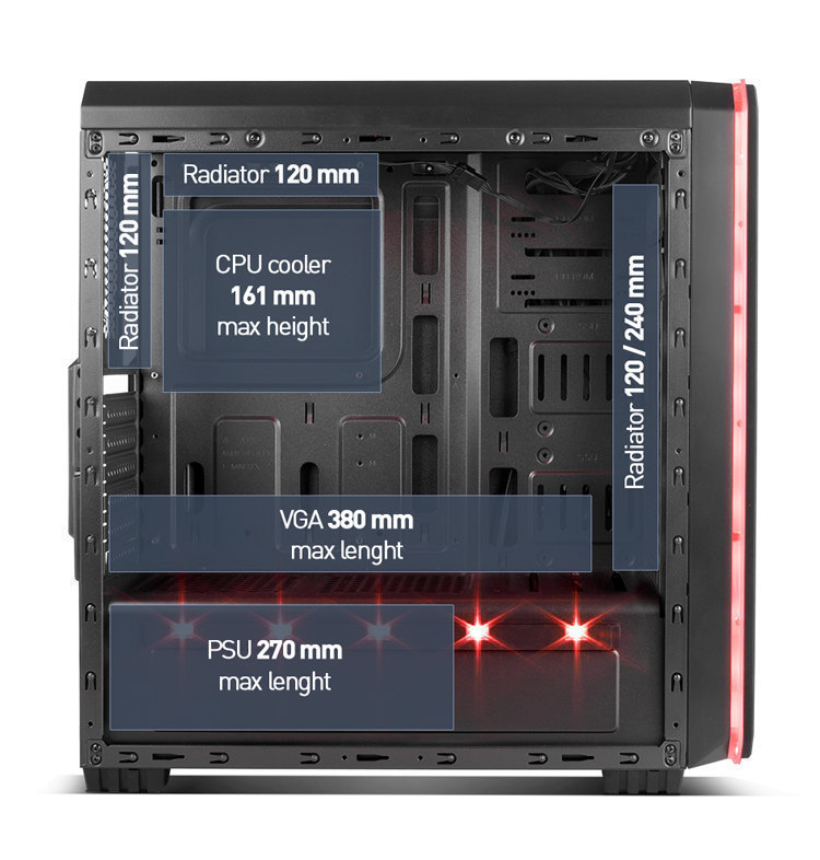 • CPU refroidisseur : 161 mm (hauteur maximale)