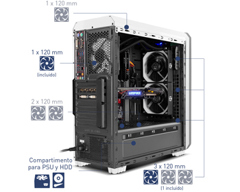 Il a un compartiment au bas pour localiser le PSU et le HDD, de sorte que la chaleur libérée par eux ne soit pas transférée aux autres composants. En outre, ce compartiment a la possibilité d\'installer deux ventilateurs de 120 mm en haut pour extraire la chaleur générée par le PSU et le HDD.