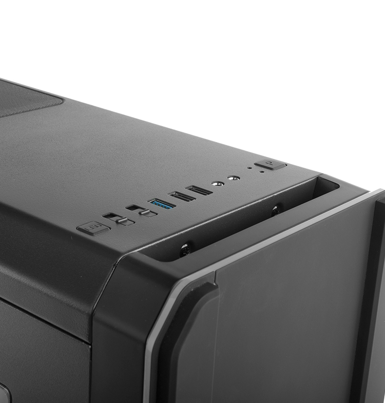 Le panneau supérieur de Hummer MC possède deux ports USB 2.0 et un port USB 3.0, ainsi que des connexions audio. En outre, il comprend deux régulateurs de vitesse pour contrôler jusqu\'à quatre ventilateurs à l\'intérieur, grâce auxquels, nous pouvons régler la vitesse de ceux-ci en trois positions: LOW / STOP / HAUT.