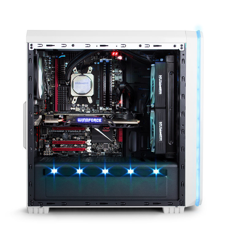 Hummer MC est le châssis le plus spécial du catalogue de la marque, une demi-vie avec 7 couleurs d\'éclairage LED différentes dans un châssis. Disponible en noir et blanc avec une grande fenêtre latérale qui vous permettra de voir tout l\'intérieur du PC ainsi que tous les composants illuminés par les LED qu\'il incorpore.