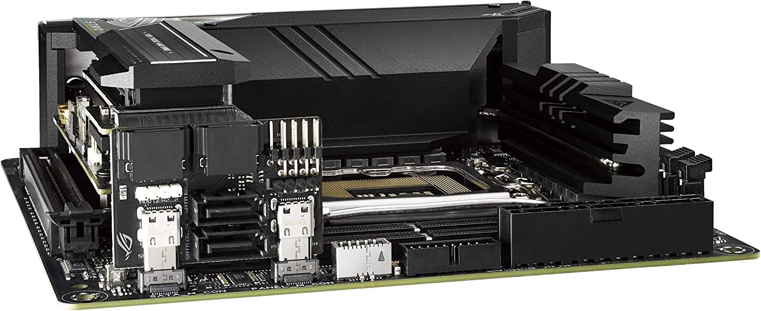 ROG Strix Z690-I Gaming WiFi est livré avec une carte d'extension qui fournit des fonctionnalités supplémentaires comprenant quatre ports SATA, un en-tête d'éclairage ARGB et des connecteurs pour un en-tête de panneau avant et un haut-parleur PC. Cette utilisation à espace optimisé permet aux générateurs de construire certains des générations PC compactées avec toutes les fonctions, ou vous pouvez également connecter le bot de mise sous tension au Power_BTN à 2 broches pour les compilations sur les &uatals compactes.