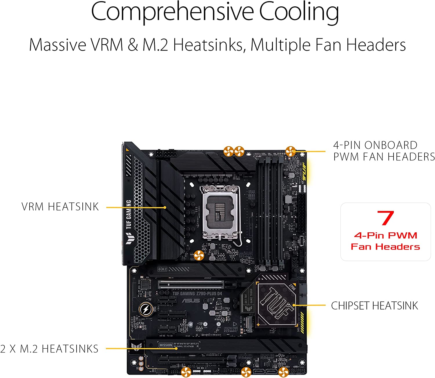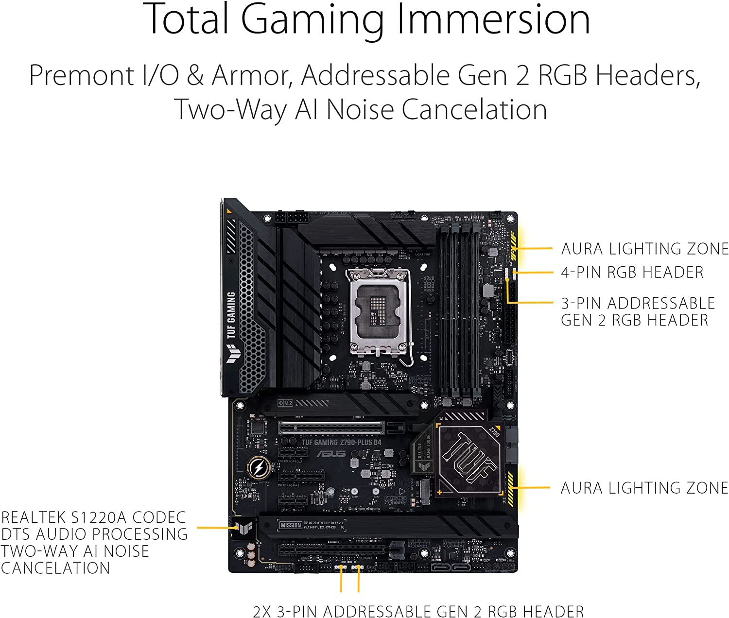 Avec une alimentation améliorée et des options de refroidissement complètes pour alimenter le récent processeur Intel m &aaists, le support ADEM pour la mémoire DDR4 et le stockage PCIe 4.0, le TUF GAMING Z790-PLUS D4 est la base idéale pour votre meilleur équipement de combat Intel.
