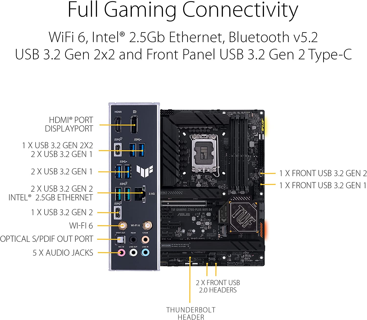 Avec une alimentation améliorée et des options de refroidissement complètes pour alimenter les processeurs Intel récents, les &aws prennent en charge la mémoire DDR4 et le stockage PCIe 4.0, le TUF GAMING Z790-PLUS WIFI D4 est la base idéale pour votre meilleur équipement de combat Intel.