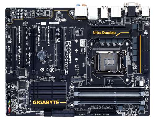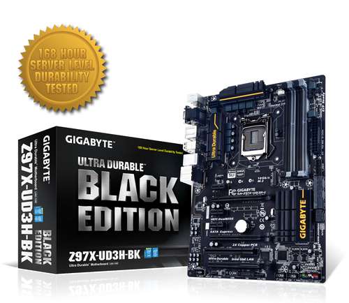 Gigaoctet GA-Z97X-UD3H-BK. types de mémoire compatibles: DDR3-SDRAM, Type de fentes mémoire: DIMM, Support du canal mémoire: Famille de processeurs: Intel, processeur compatible: Celeron, Core i3, Core i5, Core i7, Pentium, prise de processeur: Socket H3 (LGA 1150). Prise en charge des interfaces de disque dur: Série ATA III. Version HDMI: 1.4 Type d \' interface Ethernet: Gigabit