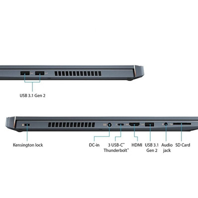 Le ProArt StudioBook Pro 17 est &aUtits; équipé d'un processeur Intel Core i7 de six n úres de 9. ª génération &o, un processeur dise ñ pour gérer des applications multiprocessus complexes qui dépassent les performances de la génération précédente et vous assurent un environnement multitâche incl. L'une des principales innovations de cette équipe est la capacité de rester fr ío, même si vous travaillez à plein rendement. Il a des dispositifs de dissipation qui optimisent la ventilation intérieure, et nous avons testé son système de réfrigération pour attester de son extrême durabilité. En outre, il est étonnamment silencieux, car il génère moins de 35 dB de bruit lorsque l'unité centrale et le GPU sont soumis aux charges extrêmes des repères.