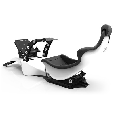 Le design unique font de cette plate-forme la plus simple de se sentir comme pilote de formule. La position couchée du siège font de cette plate-forme appropriée pour de longues courses et donner de la stabilité de l'utilisateur et le contrôle du volant et pédales. La plate-forme est livré avec plateau clavier / souris inclus et Buttkicker partout inclus. La plaque de roue est pré-percée pour les roues haut de gamme les plus courantes sur le marché. Accessoires: Haut-parleurs Mont (Logitech® Z906 Support) du système de mouvement complet avec 4 actionneurs et adjustmebt électrique complète du siège et les pédales, meuble tv unique pour un maximum de 65 "TV et triples représente jusqu'à 3 × 47" TV.