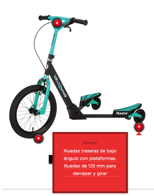 Le nouveau DeltaWing fait un bond au niveau d\'action des trois prochaines roues. Sa structure en acier, sa puissante roue avant et ses roues arrière à angle bas font du Scooter Razor DeltaWing un skateboard à trois roues impressionnant mais doux qui permet de faire des promenades faciles sur les trottoirs jusqu\'à ce que l\'asphalte soit déchiré.