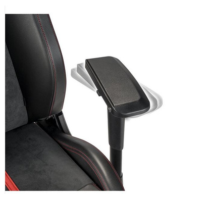 Le siège de jeu est tapissé en cuir Alcantara® et en cuir synthétique et permet à l'utilisateur de régler la hauteur et l'angle de l'assise. Le dossier s'arrête et procure un ajustement lombaire fin.