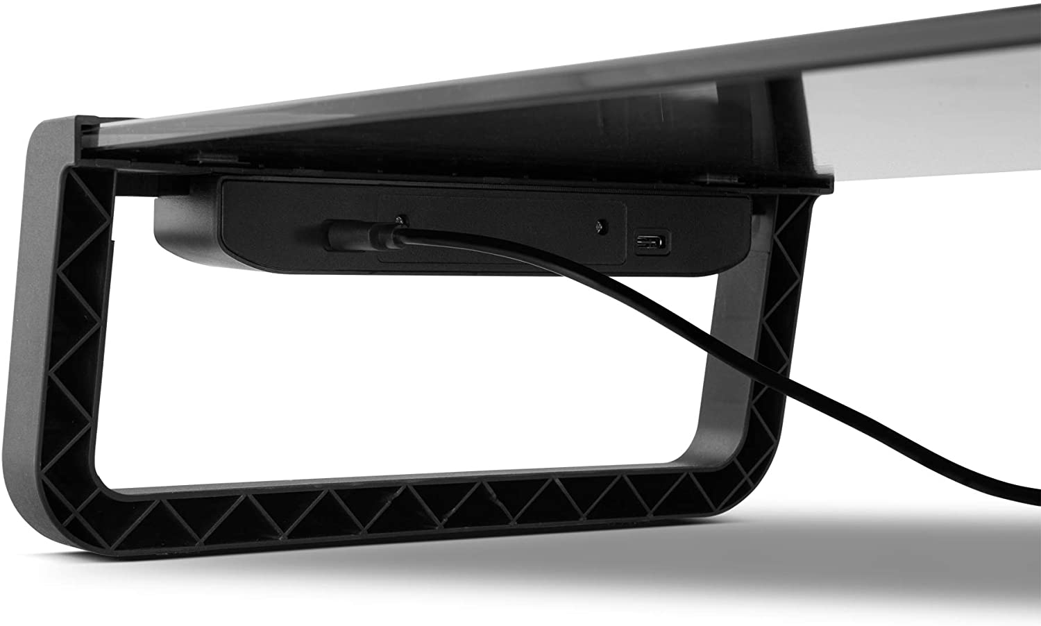 LeRiser Pro est un support élégant et &arectictic pour le contrôle de l'&outilde; en matériaux de haute qualité, en verre trempé, avec 4 ports USB 3.0 et un rangement inférieur qui permet non seulement d'élever le moniteur jusqu'à la hauteur m &arecutos c &o. Mode, j'offre la vision parfaite pour vos départs intenses ou de longues journées de travail, mais aussi pour maximiser l'espace du bureau.