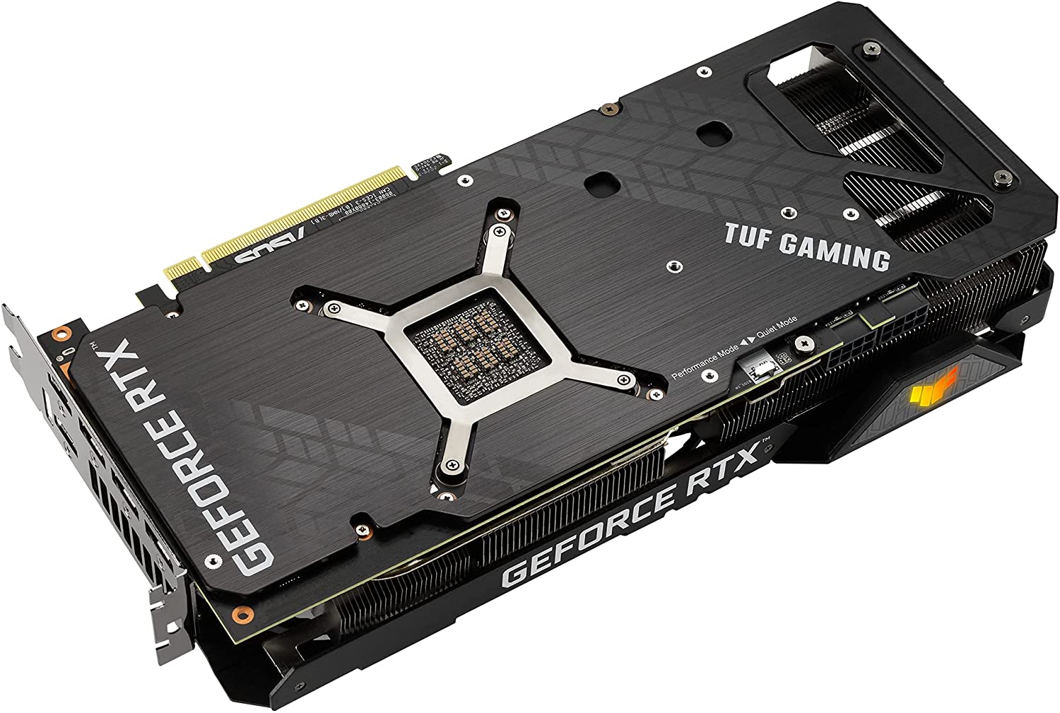 La TUF GAMING GeForce RTX 3080 Ti a été construite pour fournir de l'alimentation et des &oatals de refroidissement. Une nouvelle couverture entièrement remplie de &aholica abrite trois puissants ventilateurs de technologie axiale utilisant un roulement à bille durable. La rotation des ventilateurs a été optimisée pour réduire la turbulence, et un mode d'arrêt arrête les trois ventilateurs à basse température. Ci-dessous, les dissipatères thermiques indépendants pour le GPU et la mémoire maintiennent les &easties thermiques sous strict contrôle. Les &iacitims supplémentaires, y compris les composants TUF, la technologie Auto-Extreme, un nouveau support GPU et un évent sur le fond de panier, font de la TUF une puissance appropriée.