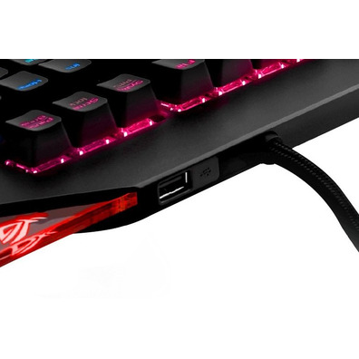 Grâce à des options de connexion avec l'Aura de Synchronisation et de ROG Manège II ont un clavier avec de nombreuses options de personnalisation. D'une part, de l'Aura de Synchronisation vous permet de personnaliser le rétro-éclairage des touches individuelles et de l'éclairage qui est situé sur le côté. Il est compatible avec toute la gamme de couleurs et dispose de plusieurs effets dynamiques. Il est compatible et configurable avec tous les appareils compatibles dans l'écosystème, l'aura.