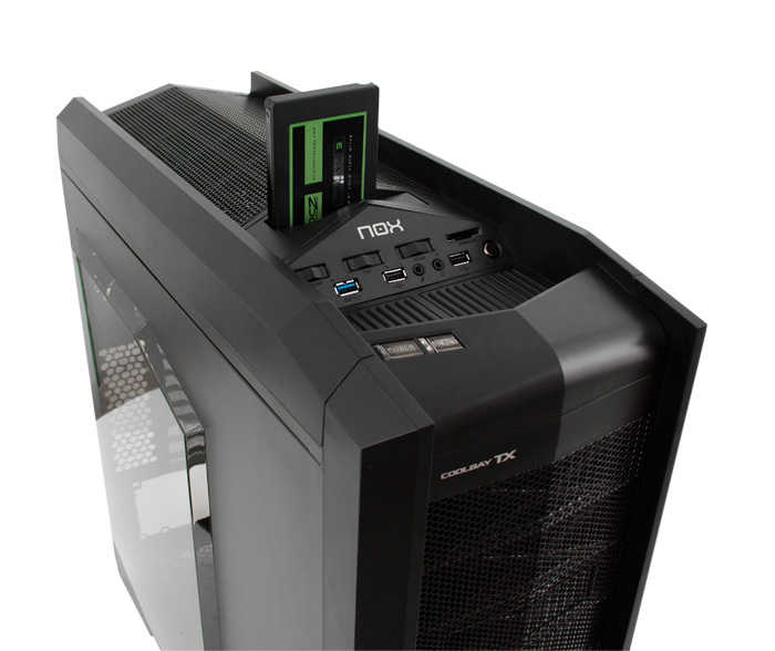 NOX NXCBAYTX. Facteur de forme: Midi-Tower, Type: PC, Matériaux: SECC. Emplacement de l\'alimentation électrique: Historique. Support des dimensions du disque dur: 63, 5, 88, 9 mm (2,5, 3,5 "), cartes mémoire compatibles: Memory Stick (MS), MMC, SD, support de la station de base pour le disque dur: 2.5, 3.5. Indicateurs DEL: Puissance, état. Largeur: 21 cm, Profondeur: 46,5 cm, Hauteur: 47 cm