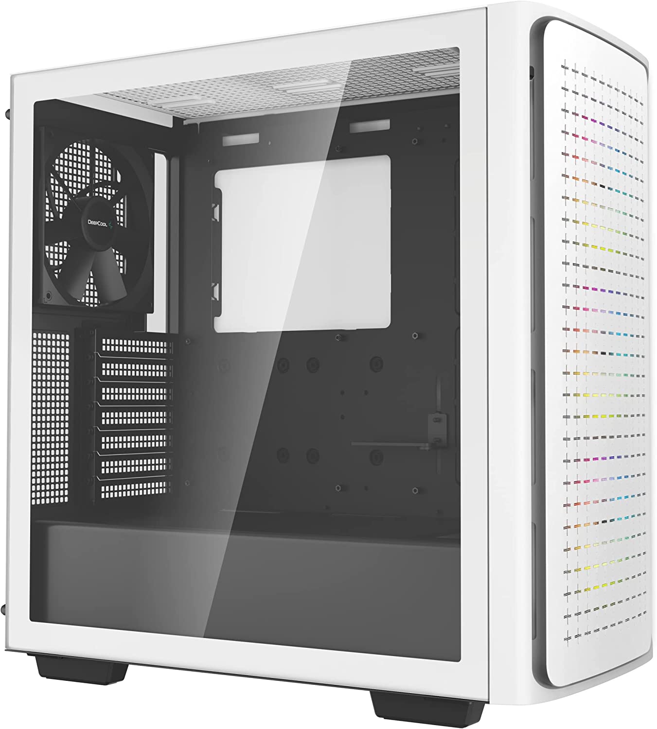 Le cabinet DeepCool CK560 Mid-Tower offre une expérience de génération PC optimisée avec une grande compatibilité et des performances de haut débit grâce à quatre ventilateurs préinstallés puissants et une ventilation étendue sur tout le châssis.