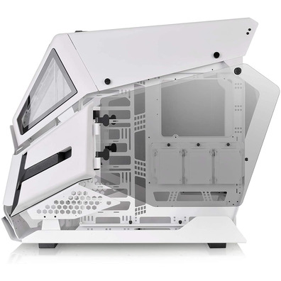 Le châssis complet de la tour AH T600 de la série AH est forgé avec une architecture robuste et élégante avec deux grands panneaux de verre trempé de 5 mm sur les côtés gauche et droit, et trois fenêtres en verre trempé de 3 mm sur le devant. Les ports d'entrée-sortie sont situés sur le panneau frontal supérieur à l'aide d'un ñ ou d'un système de mise sous tension futuriste. Il s'agit d'un boîtier à cadre ouvert, ou, par rapport à la série P Thermaltake Core, qui assure non seulement une ventilation exceptionnelle, mais permet également aux utilisateurs de démontrer leur travail d'assemblage manuel et d'afficher leurs composants internes.