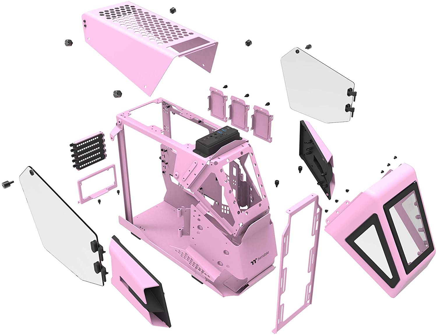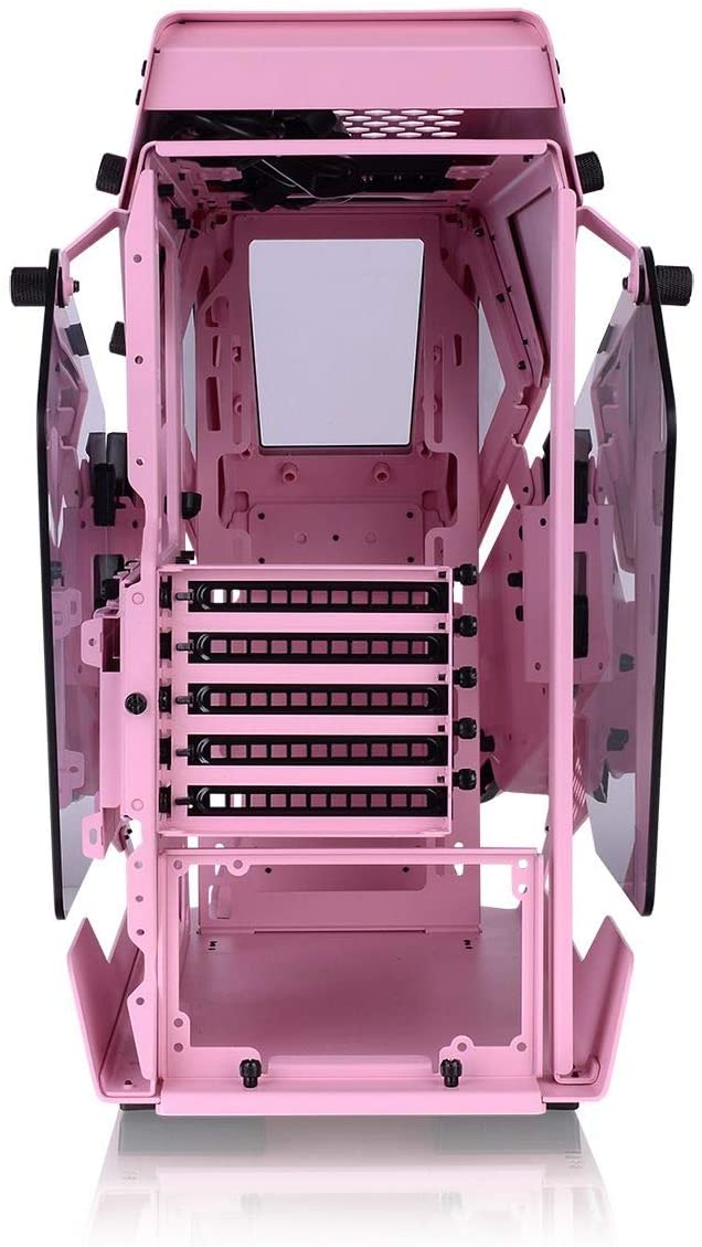 Le T200 rose AH est une version limitée du AH T200. Il est forgé avec une architecture robuste de style force dans la région avec un corps rose, deux grands panneaux de verre trempé de 4 mm sur les côtés gauche et droit, et trois vitres de 3 mm en verre trempé sur le devant. Les ports E/S sont situés sur le panneau frontal supérieur avec une puissance futuriste. Le T200 Rose AH est un châssis innovant et vraiment unique qui assure non seulement une ventilation exceptionnelle, mais permet aux utilisateurs de démontrer leurs compétences et d'afficher leurs composants internes. Il peut contenir jusqu'à deux ventilateurs de 140 mm à l'avant et au dessus, et un refroidisseur d'unité centrale sur un de 240 mm ou 280 mm sur le devant. La tour Thermaltake AH T200 Pink est unique en son genre et attire des gens qui aiment leurs PC pour être adorables et cool en même temps.