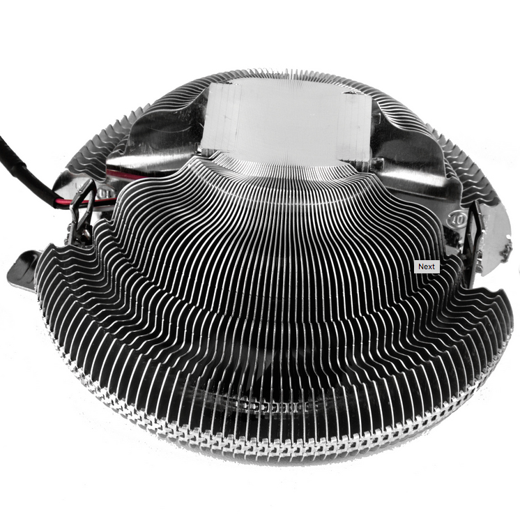 | Spécifications: | - Matériau: Atique et base en aluminium - Ventilateur: 85 x 25 mm - Roulements hydrauliques - Vitesse: 2220 RPM - Débit d\'air: 38.12 CFM - Niveau sonore: 26,4 dBA Puissance: 95 W (max.) - MTBF: 40 000 h - Connecteurs: 3 broches |
