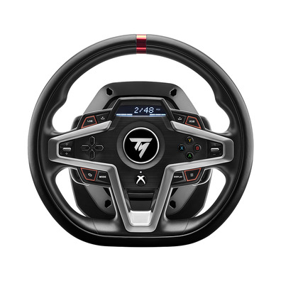 Le volant bénéficie d’une augmentation de puissance : 70% supplémentaire (par rapport aux précédents volants hybrides Thrustmaster TMX) tout en ajoutant des fonctions inédites comme ses presets de retour de force modifiables directement en jeu, ses palettes de vitesses magnétiques, son écran interactif disposant de plus de 20 affichages différents ou encore son pédalier magnétique avec 4 modes de pression sur la pédale de frein.