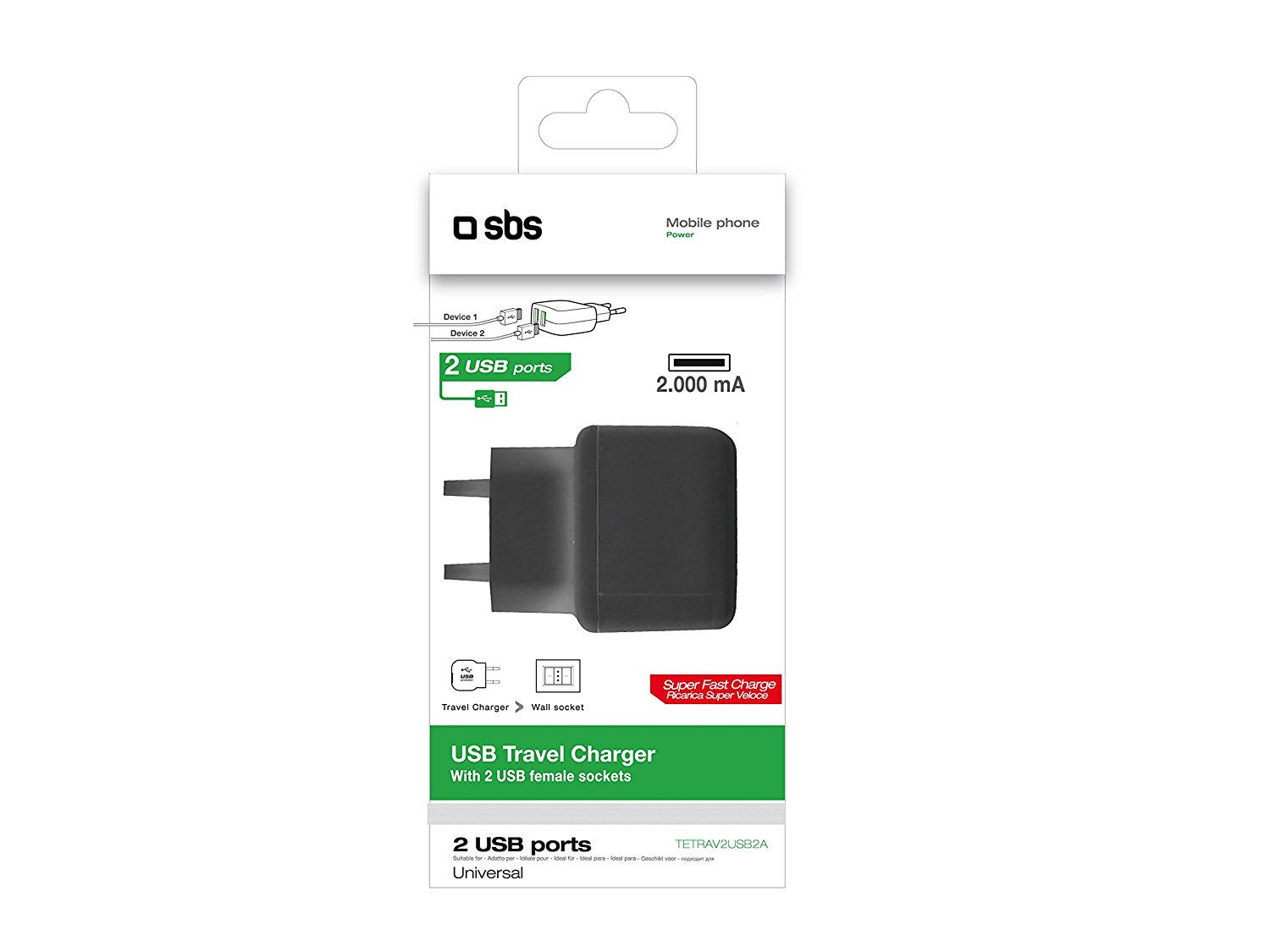Wall charger 2000 mAh with 2 USB Port SBS