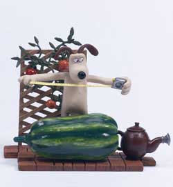 Figure de Gromit mesurant un légume. Mesures 18 centimètres approximativement